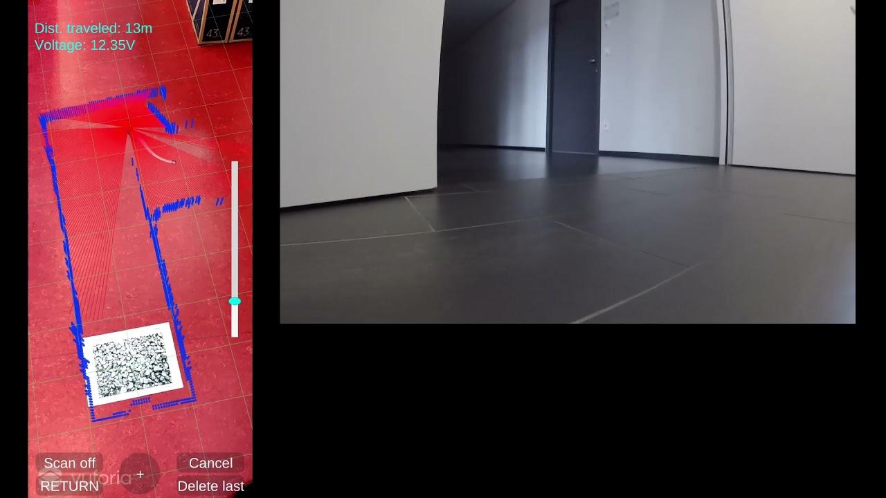 A mobile robot should be controlled by means of an AR application. A map of the real environment is automatically created, in which the mobile robot is localized. The mobile robot can be navigated to any position by input on the touchscreen.