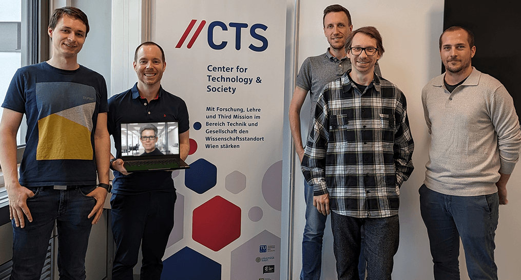 Pictured, from left to right: Lukas Kloibhofer (TU Wien), Michael Urbanek (TU Wien), Regine Elbers (Virtual, Bauhaus-Universität Weimar), Benedikt Salzbrunn (UAS Technikum Wien), Matthias Steinböck (University of Vienna) and Timothy Berens (UAS Technikum Wien).
