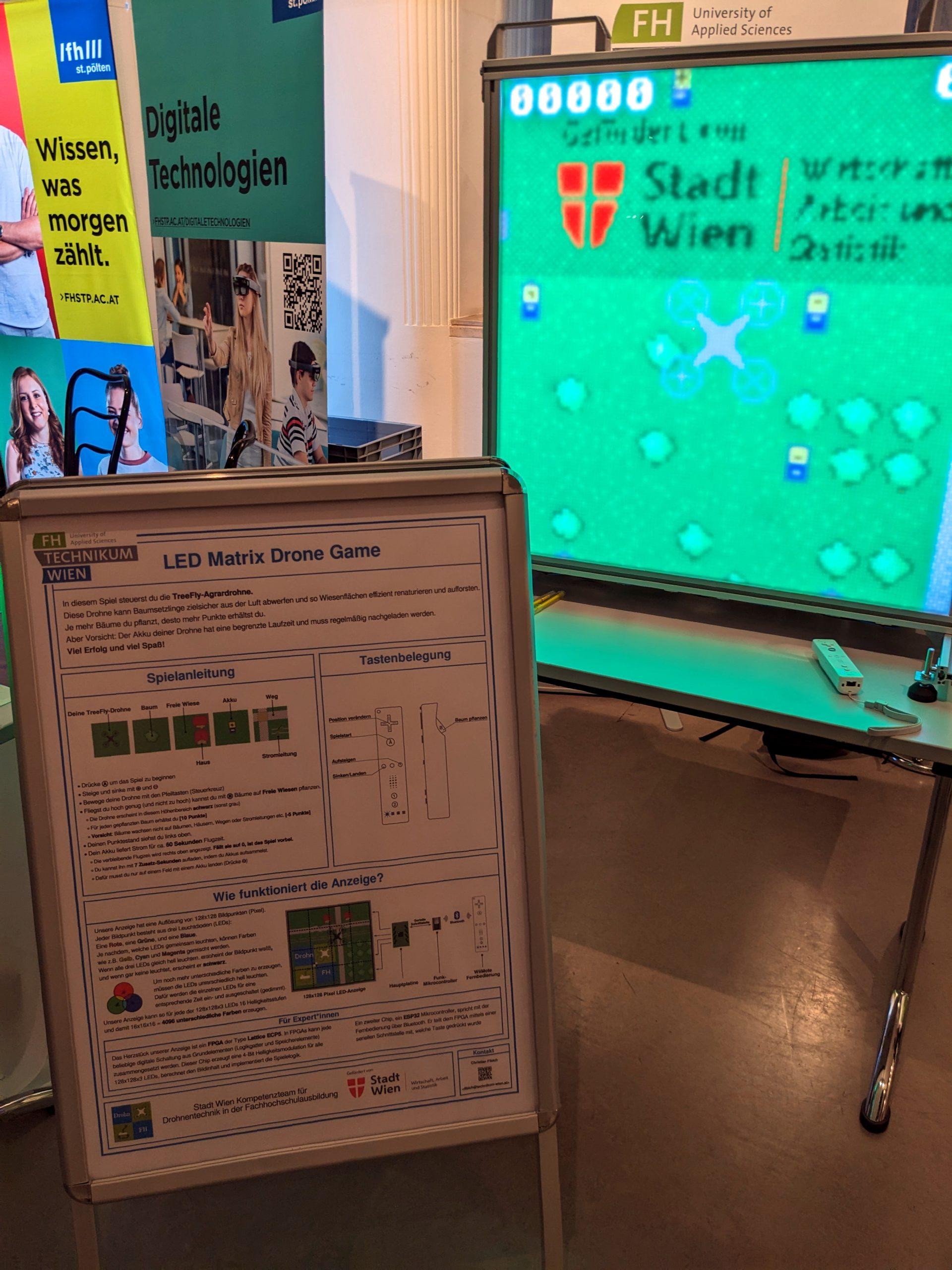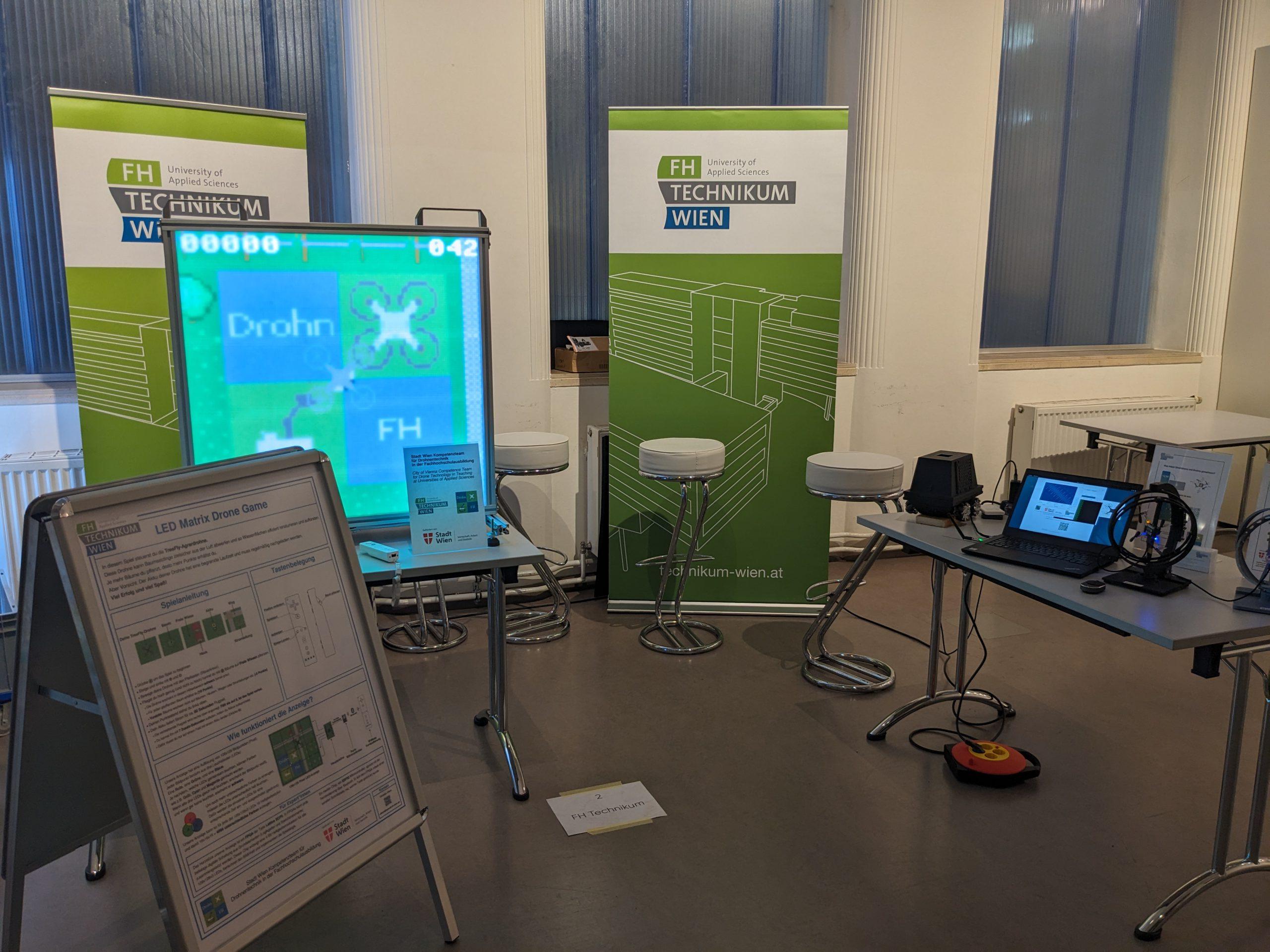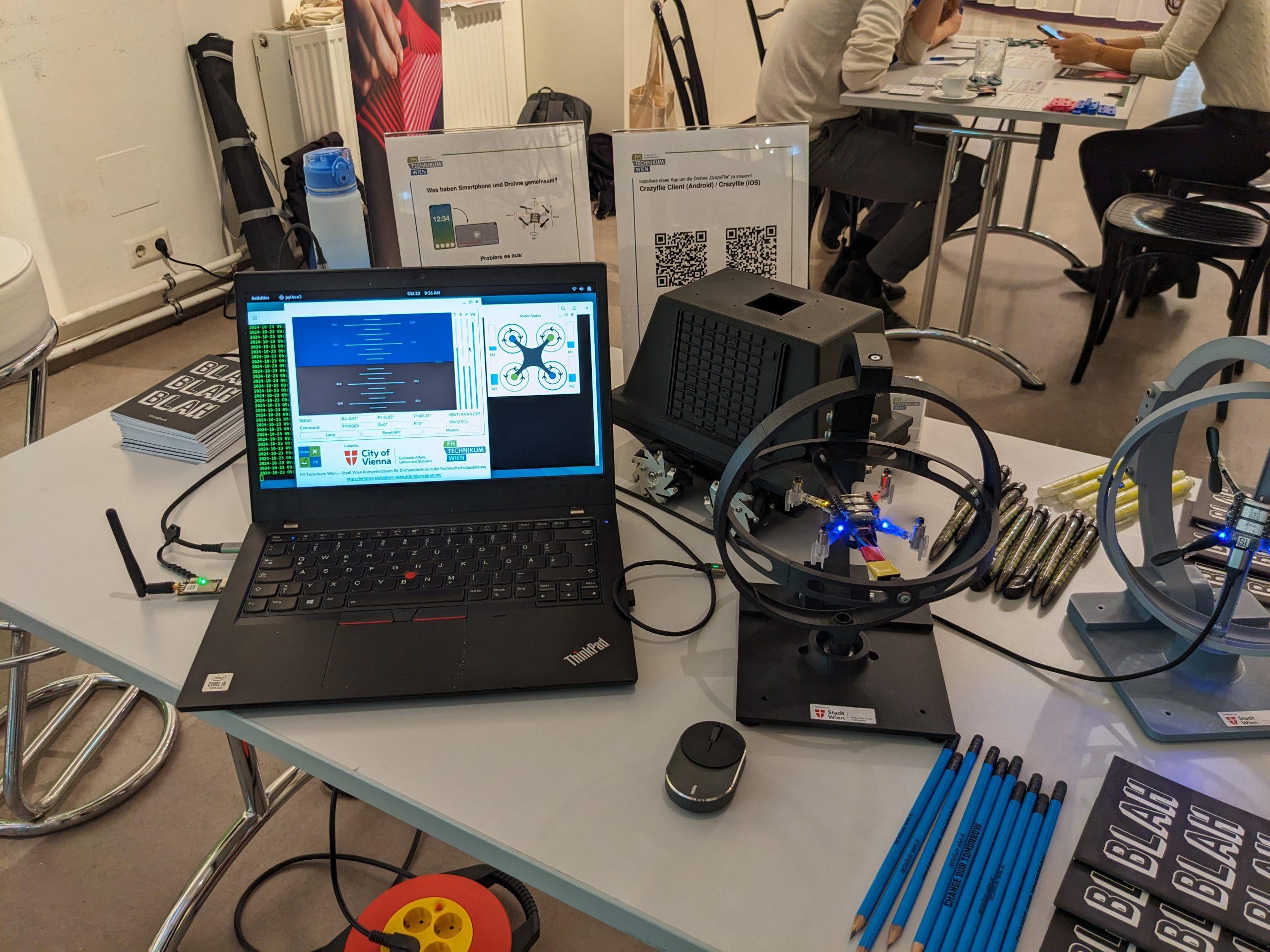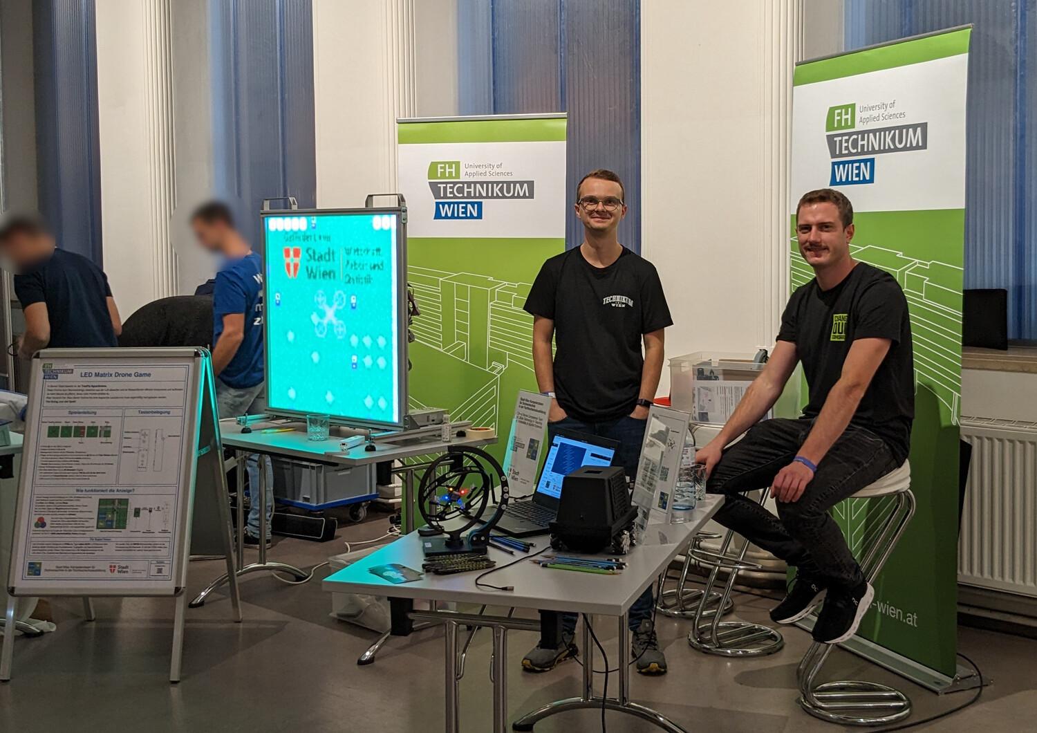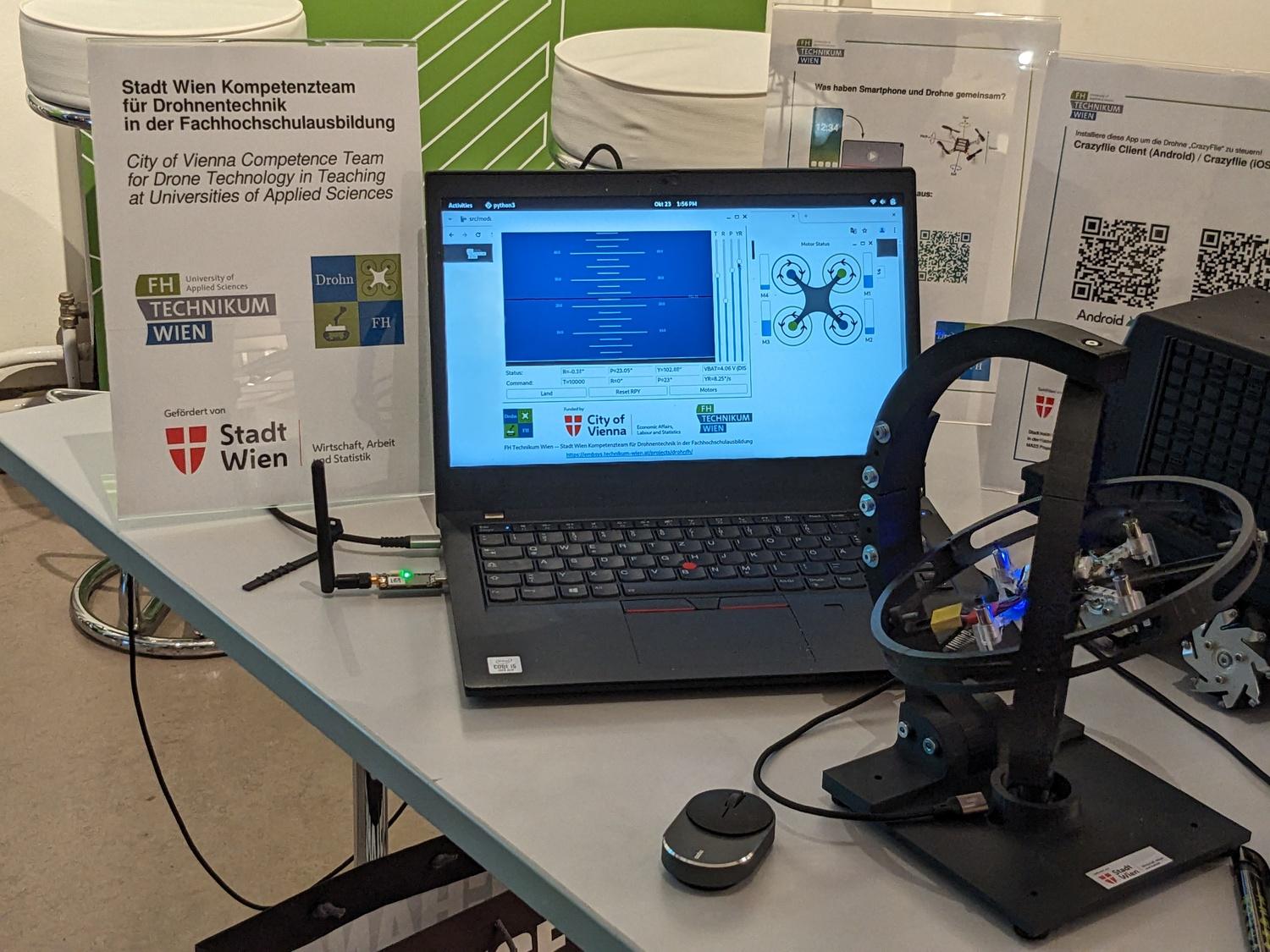 The project “City of Vienna Competence Team for Drone Technology in University of Applied Sciences Education” (see above), which was carried out in cooperation with the competence fields of embedded systems and digital manufacturing, automation and robotics, was able to exhibit drone technology in this context.