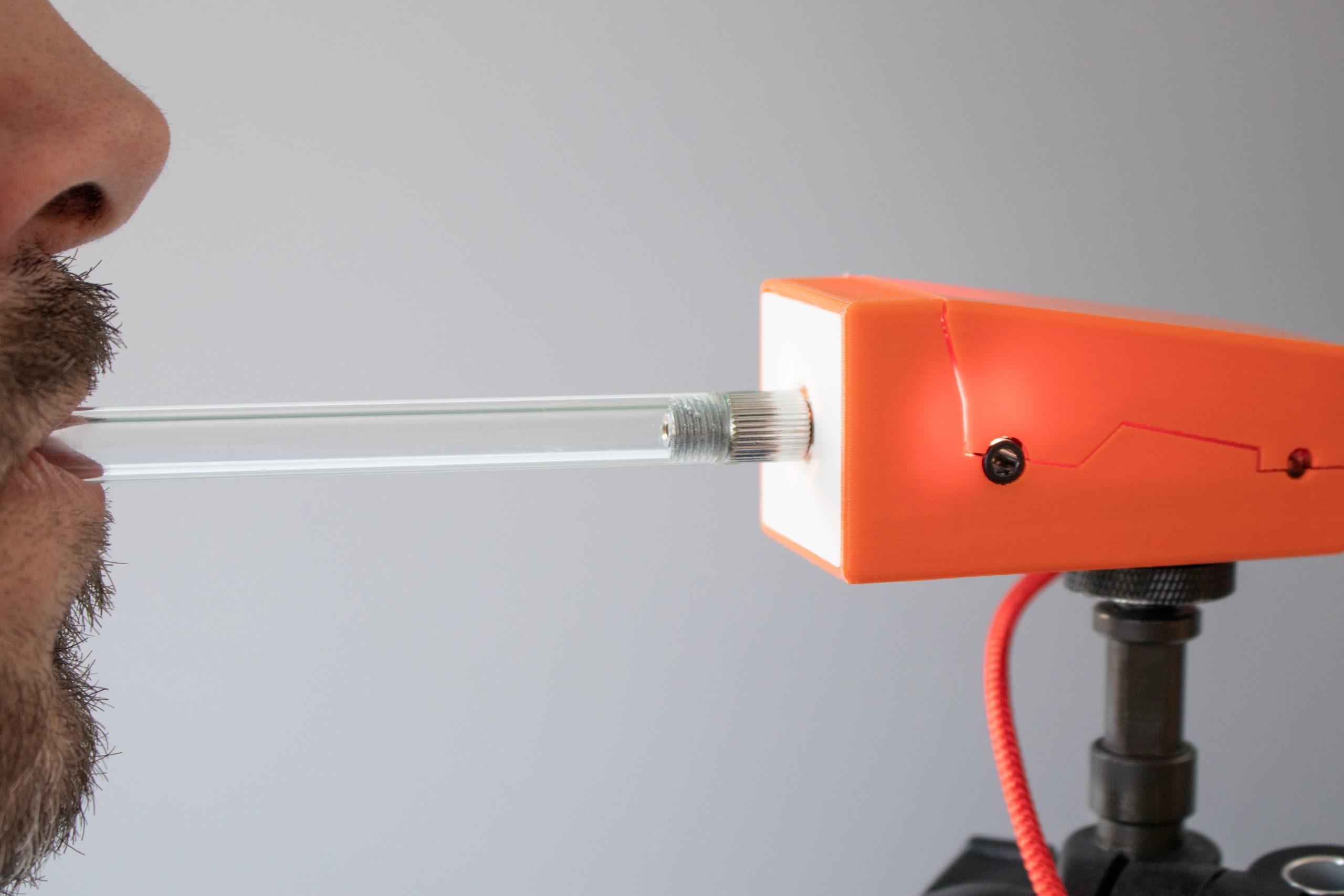 The FlipMouse has a “zero-way joystick” that is very sensitive and evaluates subtle movements of the mouth or fingers. Even minimal forces such as lip movements are sufficient for use. Clicking activity can be achieved by changing pressure on the mouthpiece (by blowing or sucking lightly – such as these sounds: “sip/puff”) or by connecting external buttons. This allows precise control of mouse and keyboard, as well as wireless control of devices via infrared signals or Bluetooth.