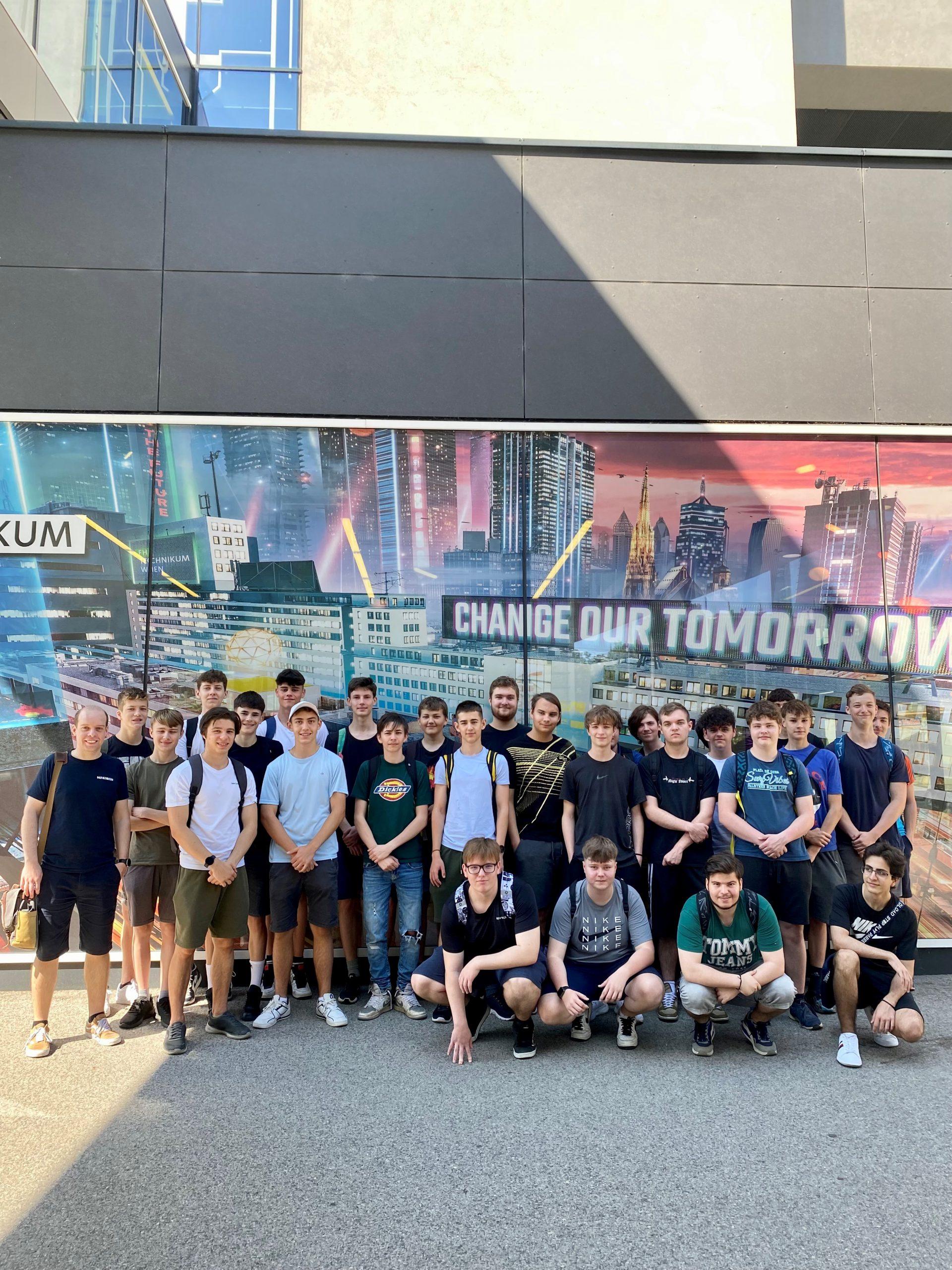 Pictured: Students from HTL Hollabrunn with their teacher Martin Höfermeyer on a visit to UAS Technikum Wien at the end of June.