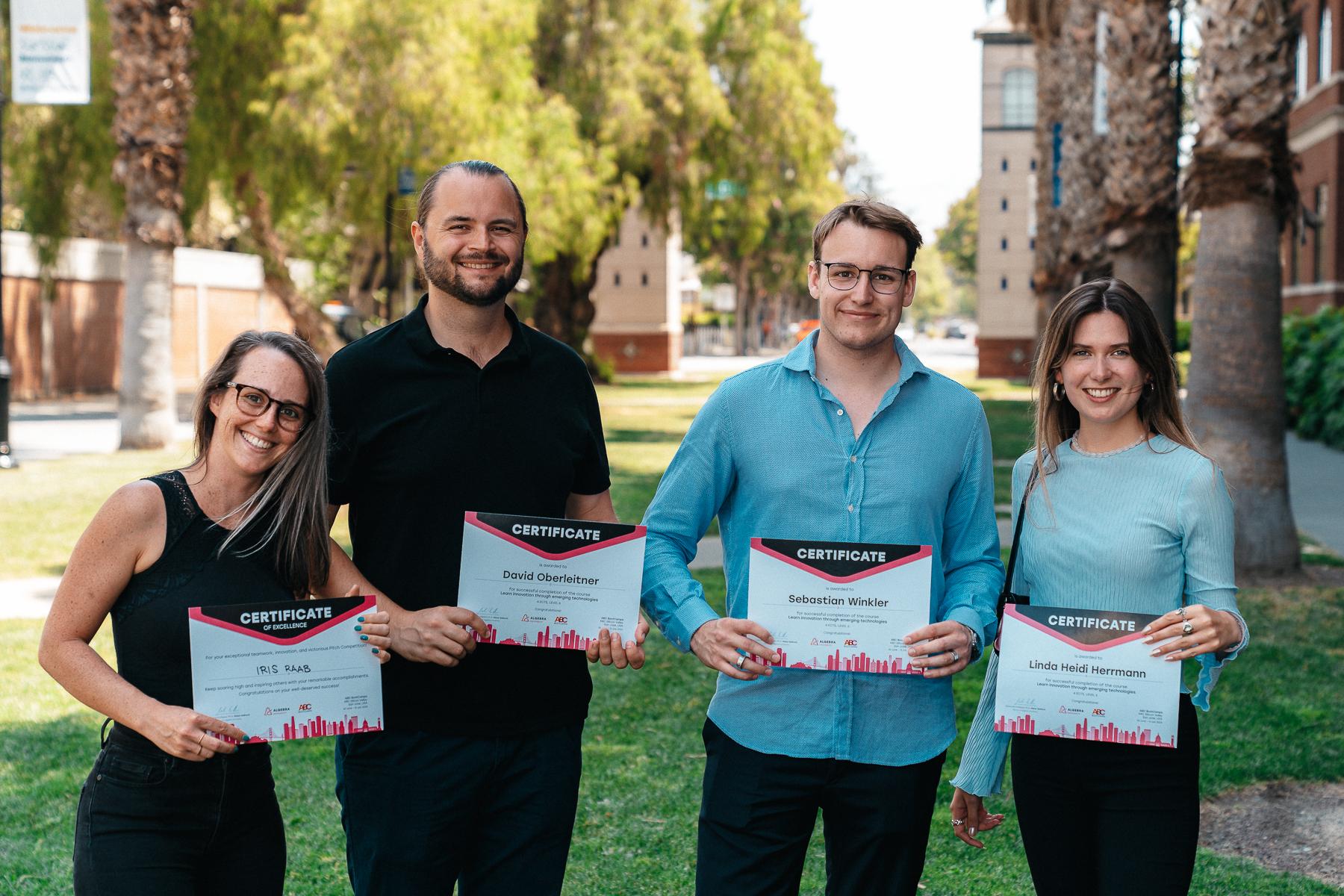 At the beginning of July, UAS Technikum Wien enabled four students to spend two weeks in Silicon Valley. The participants Linda Herrmann, Iris Raab, David Oberleitner and Sebastian Winkler completed the ABC Bootcamp at San José State University and immersed themselves in the world of innovation and technology and visited several leading companies.