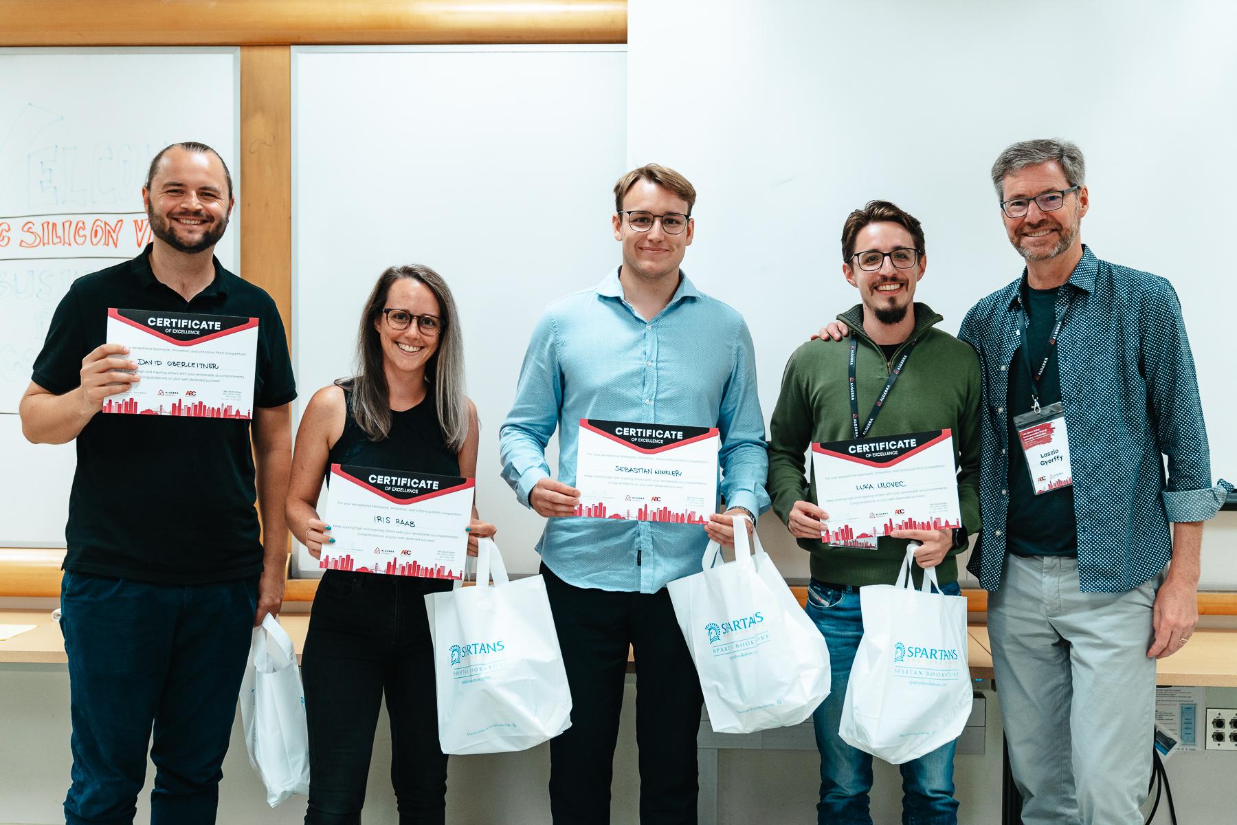 The classes at the ABC Bootcamp with Professor Laszlo Gyorffy were exciting and varied. Interactive lectures, theoretical inputs and various projects challenged the participants to give their best. The focus was not only on innovative approaches to finding ideas, but also on their refinement process and effective presentation. A product had to be developed in a team and finally, as the highlight of the two weeks, presented effectively in a pitching competition. A four-member jury with many years of experience from the Silicon Valley environment selected the winning team, which also included the four students from UAS Technikum Wien.