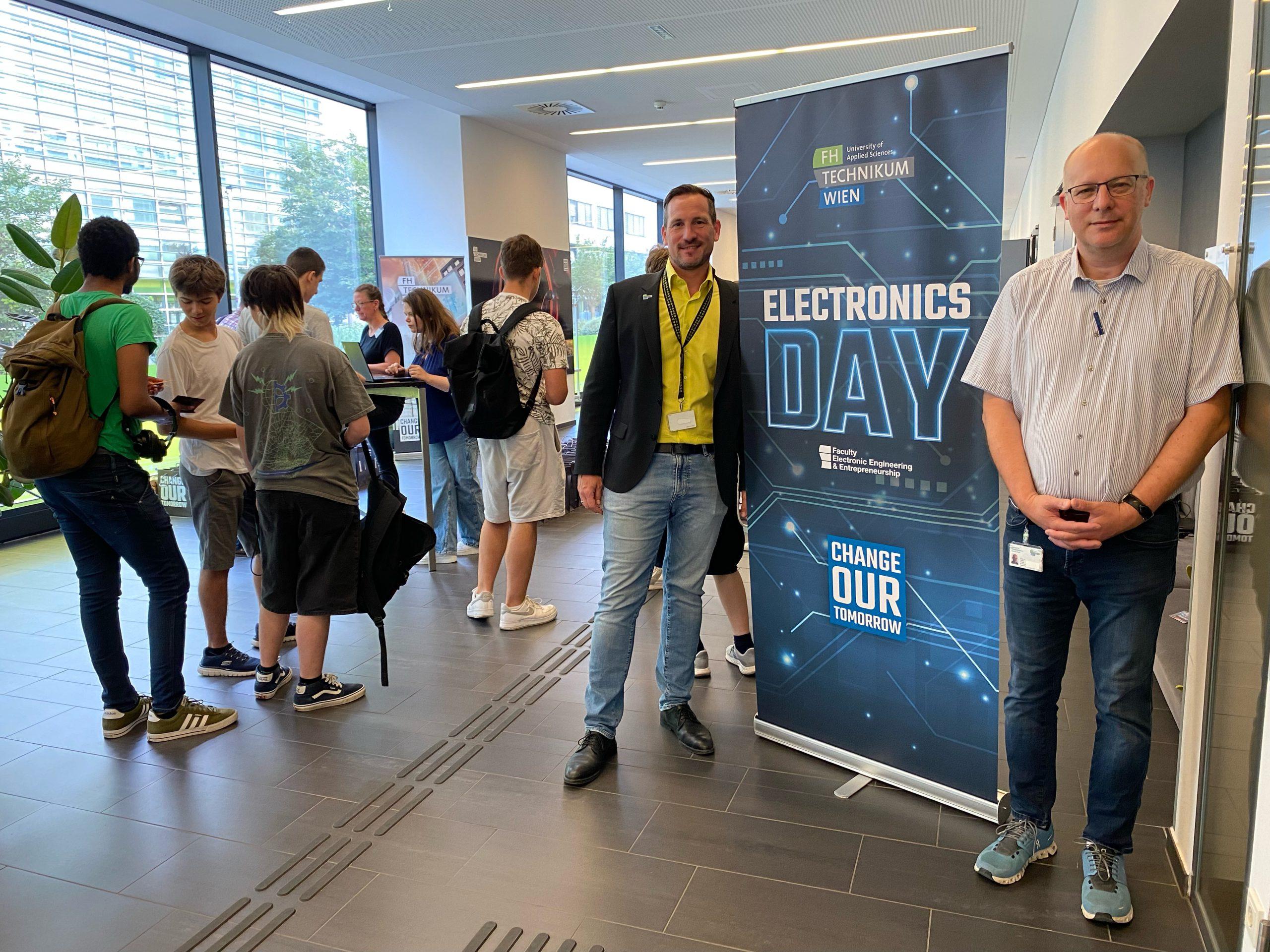 Am Electronics Day am 25.6.2024 hatten etwa 100 Schüler*innen des TGM die Gelegenheit, die FH Technikum Wien aus nächster Nähe kennenzulernen. Sie erhielten umfassende Einblicke in die verschiedenen Studiengänge, begleitet von interaktiven Workshops und spannenden Führungen durch die Labore der Hochschule.