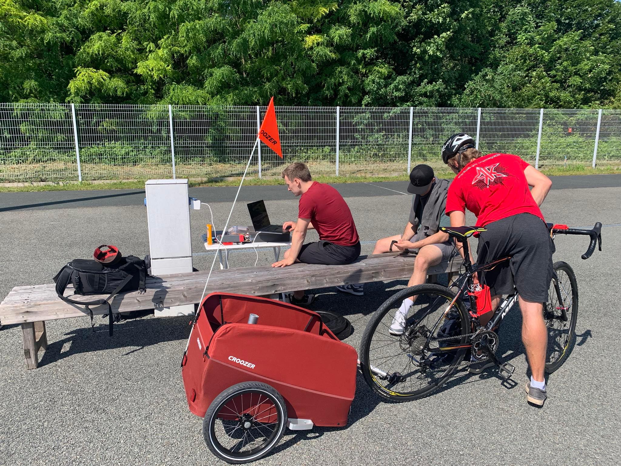 During the measurement week, various projects were worked on. For example, forces on bicycle trailers were measured in cooperation with the company SCOTT Sports. The goal was to quantify these forces in order to optimize later finite element analyses on the computer and thereby adjust the thickness of the axle, for example.