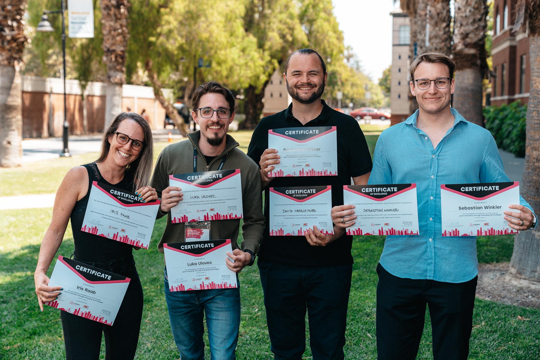 At the beginning of July, UAS Technikum Wien enabled four students to spend two weeks in Silicon Valley. The participants Linda Herrmann, Iris Raab, David Oberleitner and Sebastian Winkler completed the ABC Bootcamp at San José State University and immersed themselves in the world of innovation and technology and visited several leading companies.