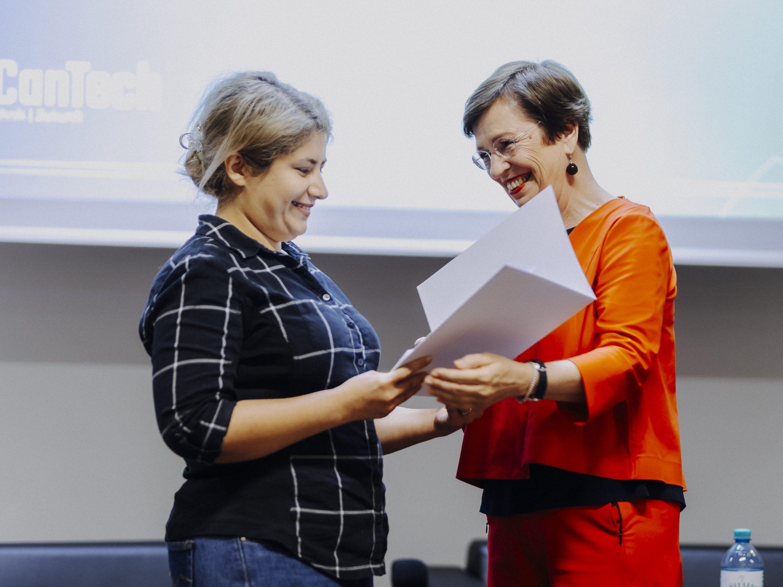 The WeCanTech Awards recognize female students and alumnae in two categories: Compatibility and Grades. In the “Compatibility” category, female students are honored for completing an outstanding course of study despite family obligations. The award winners are selected by a jury from UAS Technikum Wien. In addition to the recognition, they receive prize money of 1,000 euros. In the “Grades” category, students who achieve an outstanding grade point average of at least 1.3 are honored.