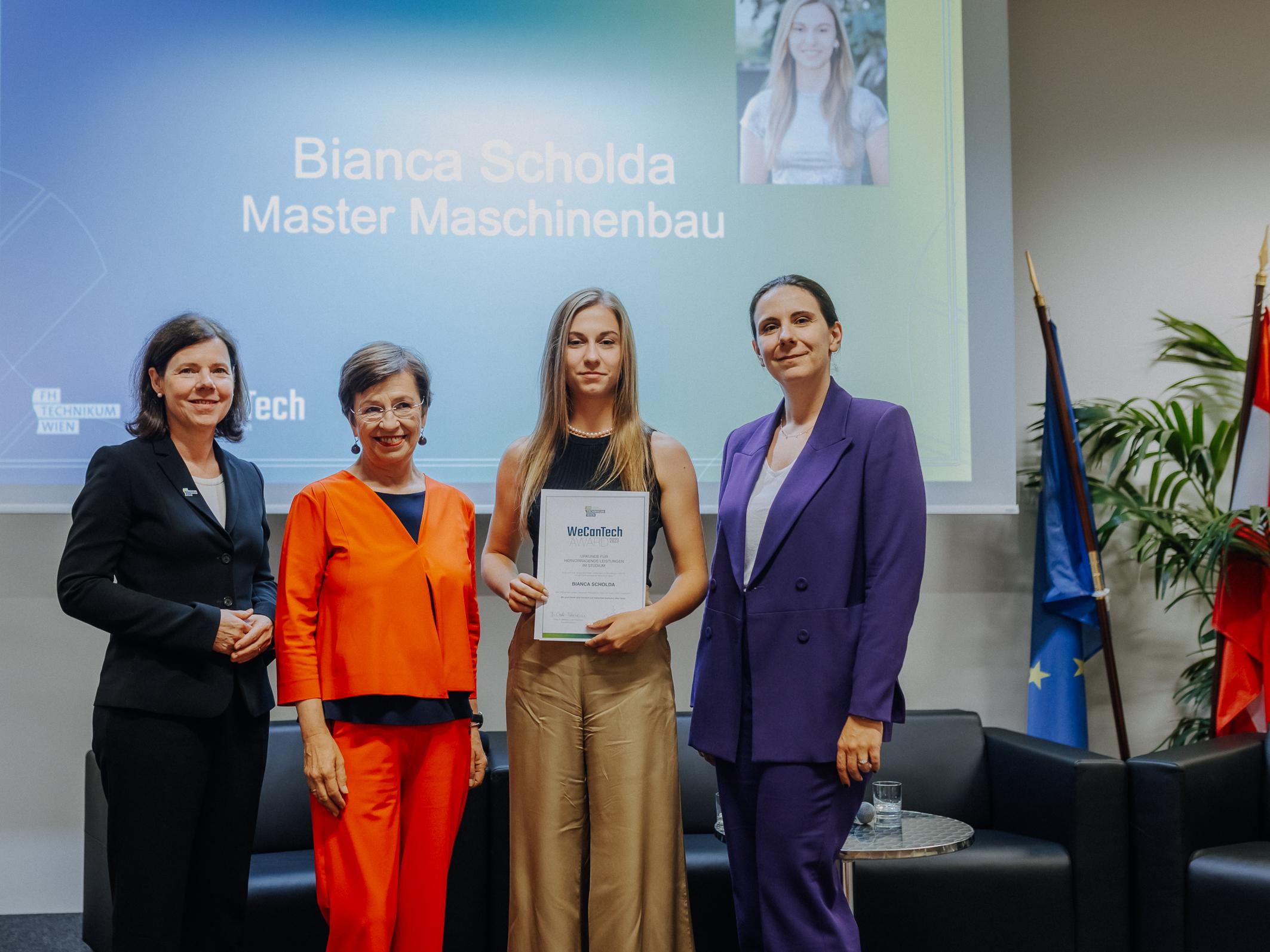 The UAS Technikum Wien presented the WeCanTech Award on May 27, 2024. This prize is awarded annually to a total of ten female students for outstanding achievements. The event took place under the patronage of Doris Schmidauer, wife of Federal President Alexander Van der Bellen.