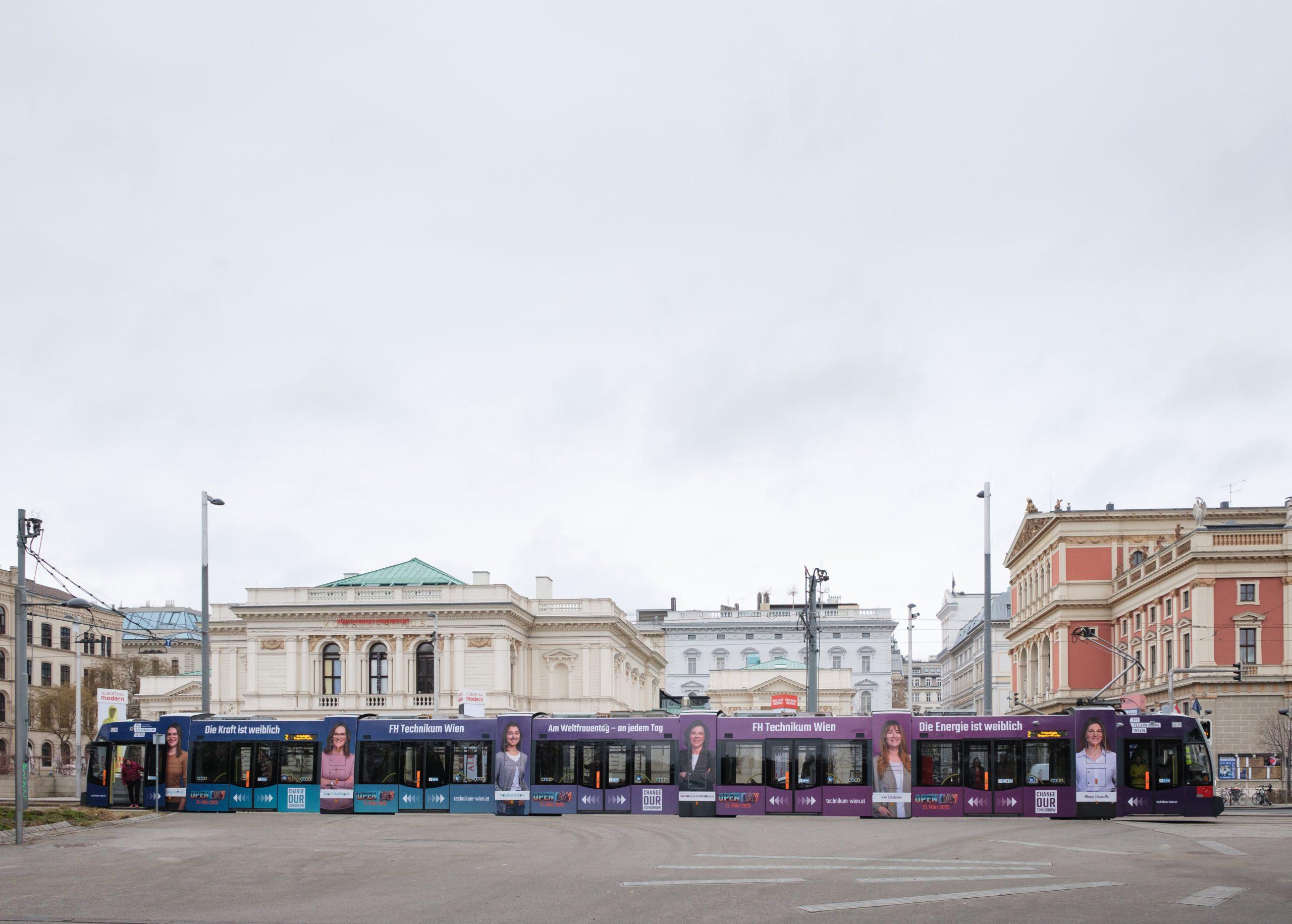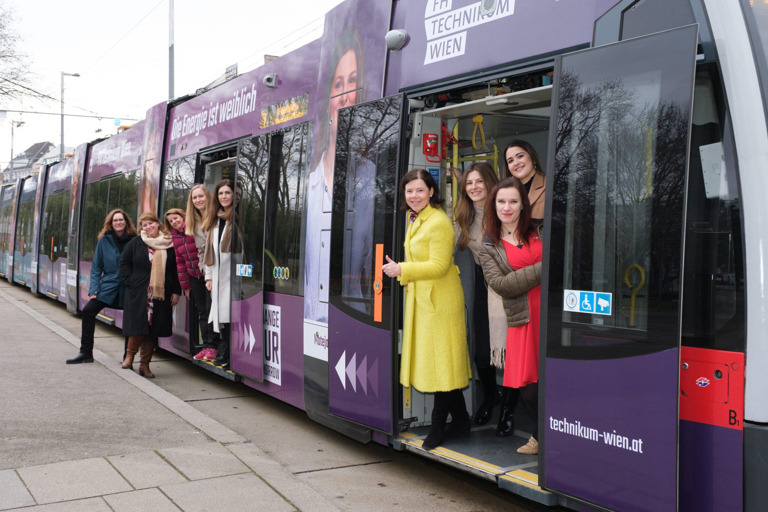 The proportion of women in technical degree programs and professions can still be increased, although there are already many women shaping and influencing technology and science. The University of Applied Sciences Technikum Wien is taking this as an opportunity to raise awareness with an advertising campaign: until the end of March, six women – from students to lecturers to managing directors – can be seen on a No. 2 tram. On the route between Dornbach and Friedrich-Engels-Platz, they represent more than 1,000 female students and more than 300 internal and external female employees. The campaign is symbolic of the opportunities for entering a technical career.