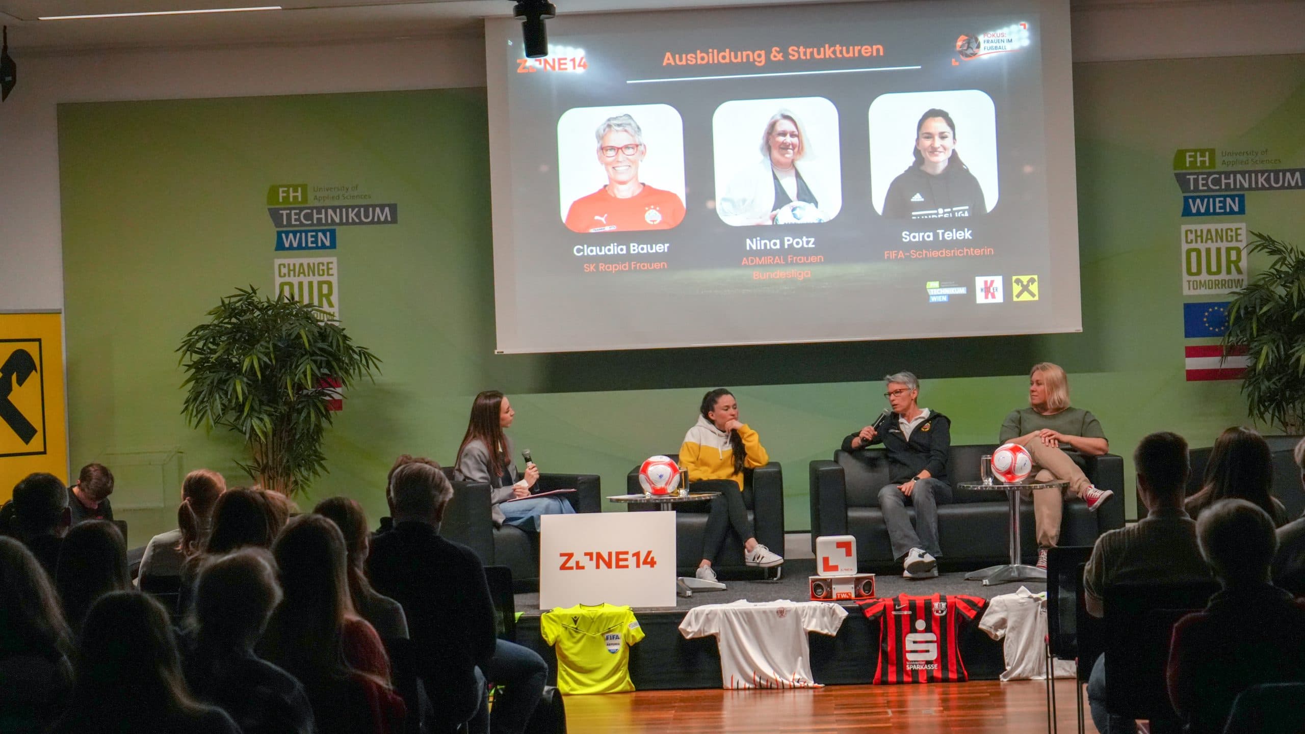 Bereits zum dritten Mal fand am 17. März 2026 die Veranstaltung „Frauen im Fußball: The Talk“ an der FH Technikum Wien statt. Austragungsort war der Große Festsaal der Hochschule, die damit erneut Raum für Austausch, Sichtbarkeit und Vernetzung rund um die Zukunft des Frauenfußballs bot. Veranstaltet wurde der Abend von zone14, dem Wiener Sporttechnologie-Unternehmen mit enger Verbindung zur FH Technikum Wien.