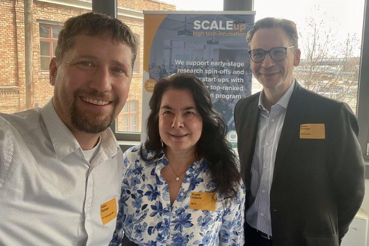 Bild oben: Rafael Rasinger (FH Technikum Wien), Brigitte Pfisterer (INiTS) und Lukas Schober (Instruclick) beim Scaleup Inkubation Programm der INITS ScaleUp.