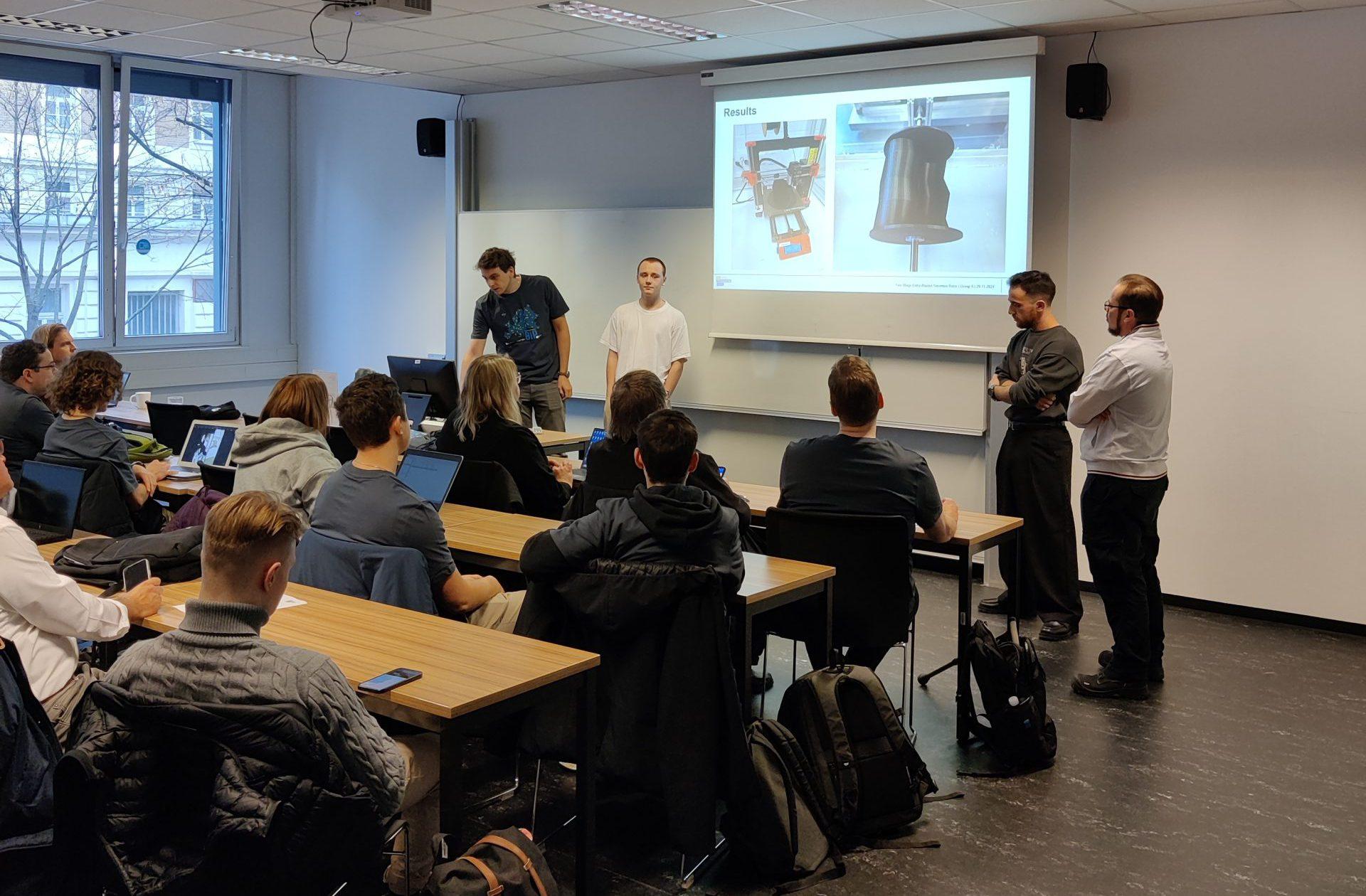 Während der Präsenzwoche in Wien, die von 25.11.-29.11.2024 an der FHTW stattfand, hatten die Studierenden-Teams neben dem Testen der Rotoren nicht nur die Möglichkeit Workshops zum Thema Präsentieren in englischer Sprache zu besuchen, sondern auch Zeit an den Projektpräsentationen sowie an den Zwischenberichten zu arbeiten. Begleitet wurde die Wien-Woche durch eine Stadtführung und ein gemeinsames Abendessen.