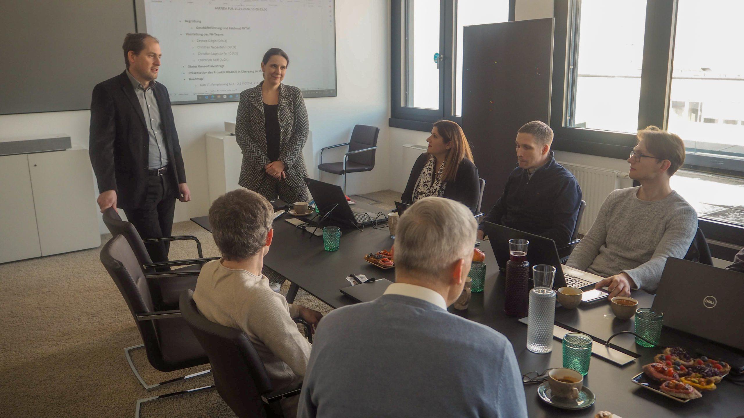Auf den Bildern: Mitte Jänner trafen sich die Projektpartner*innen an der FH Technikum Wien zum Kick-Off des Projekts MAIJA (Mobile Artificial Intelligence Justice Assistant).