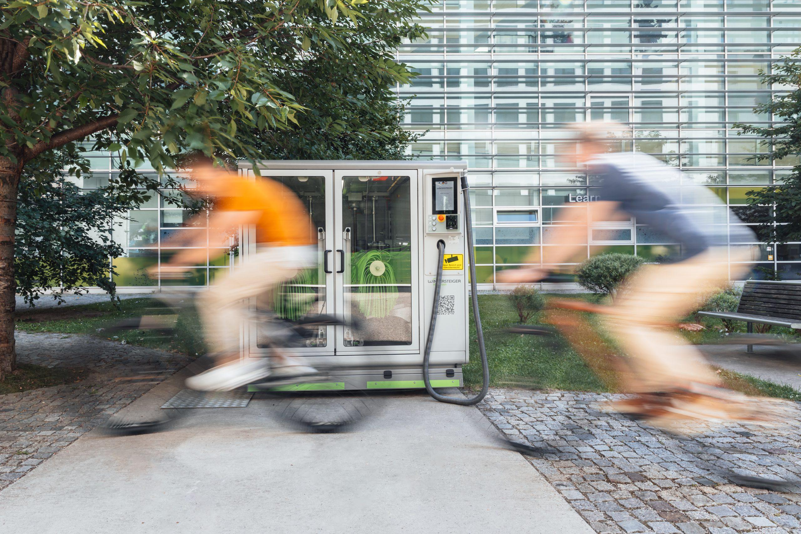 Bereits Ende letzten Jahres hat der österreichische Maschinenbau-Spezialist Wintersteiger Sports bei der FH Technikum Wien eine seiner vollautomatischen Fahrradwaschanlagen für öffentliche Tests platziert. In erster Linie, um in Zusammenarbeit mit Studierenden Erfahrung über das Nutzungsverhalten zu sammeln. Die gewonnenen Kenntnisse sind über die Wintermonate in die Weiterentwicklung der Maschine eingeflossen und ab sofort steht bereits die nächste Version der Velobrush vor dem Technikum für alle zum Testen bereit.