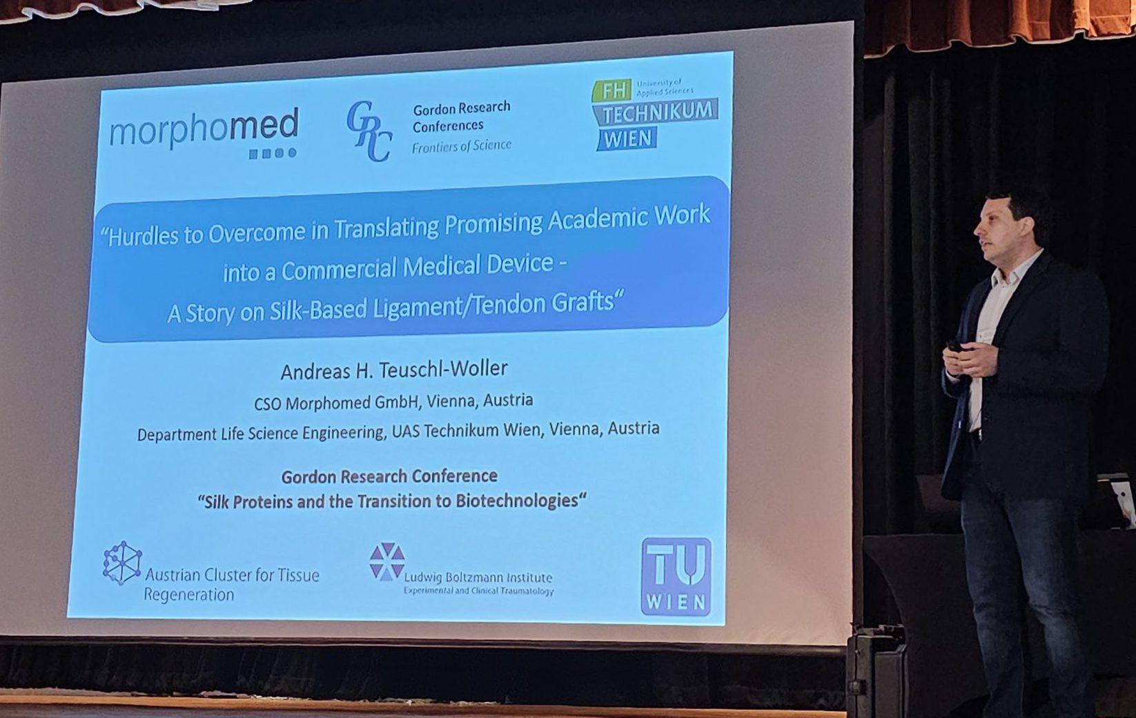 Andreas Teuschl-Woller, Leiter des Forschungsschwerpunkts Tissue Engineering and Molecular Life Science Technologies an der Fakultät Life Science Engineering, wurde vom Komitee der prestigeträchtigen GRC Konferenz ausgewählt um einen Vortrag zu halten. Die Konferenz mit dem Titel „Silk Proteins and the Transition to Biotechnologies – Gordon Research Conference“ fand vom 9. – 14. Juli 2023 an der Bryant University, Rhode Island, USA statt und war auf 200 führende Expert*innen im Bereich der Biomaterialien im Tissue Engineering begrenzt.