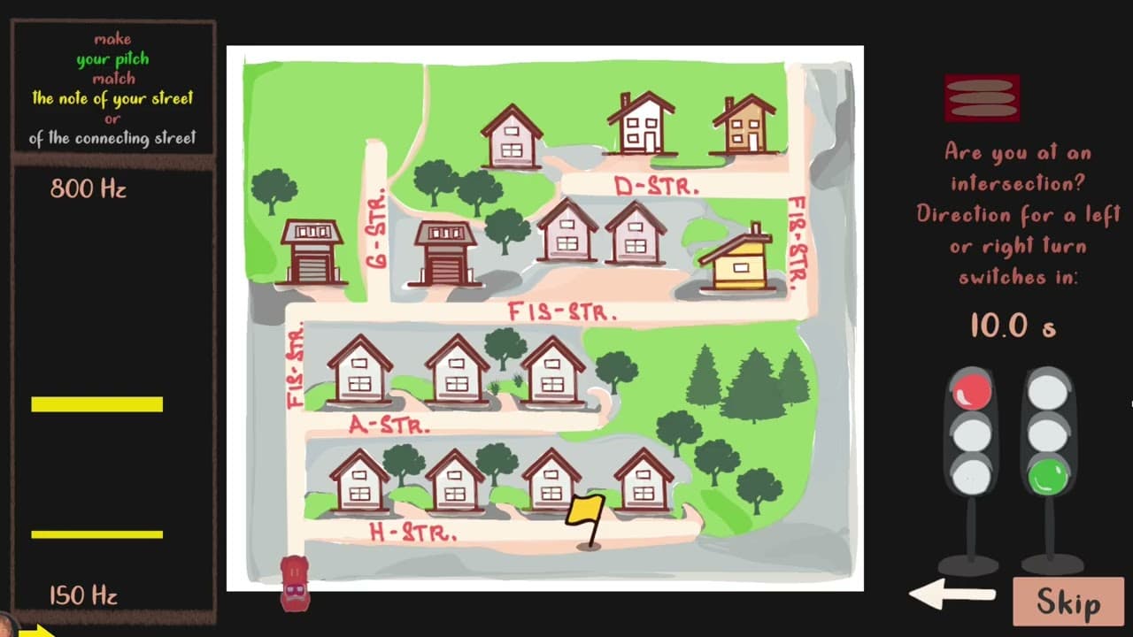 Beschreibung: Ellie’s Quest ist ein sprachgesteuertes Erkundungs- und Ausdrucksspiel, in dessen Mittelpunkt ein warmherziges, ruhiges 14-jähriges Mädchen namens Ellie steht. Sie liebt Musik, hat aber Schwierigkeiten, sich auszudrücken. In einer charmant illustrierten Vorstadtgegend hilft der Spieler Ellie dabei, ihre Stimme im wahrsten Sinne des Wortes zu finden, indem er sie mithilfe von Gesang, Geräuschen und Tonhöhen über die Karte navigiert. Das Spiel soll Kreativität, Selbstvertrauen und Zusammenarbeit fördern.